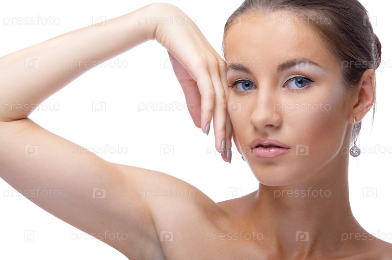Портрет голубоглазой девушки на белом