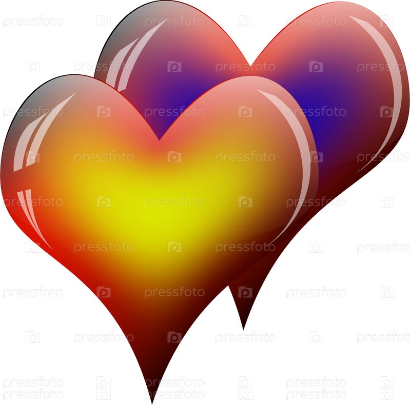 Два сердечка на белом фоне