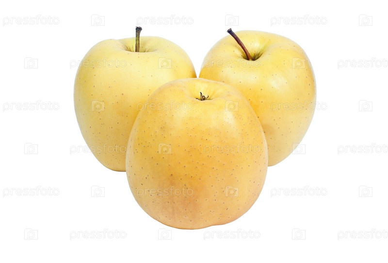 Три желтых яблока на белом фоне