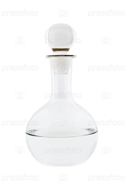 Графин с прозрачной жидкостью на белом фоне