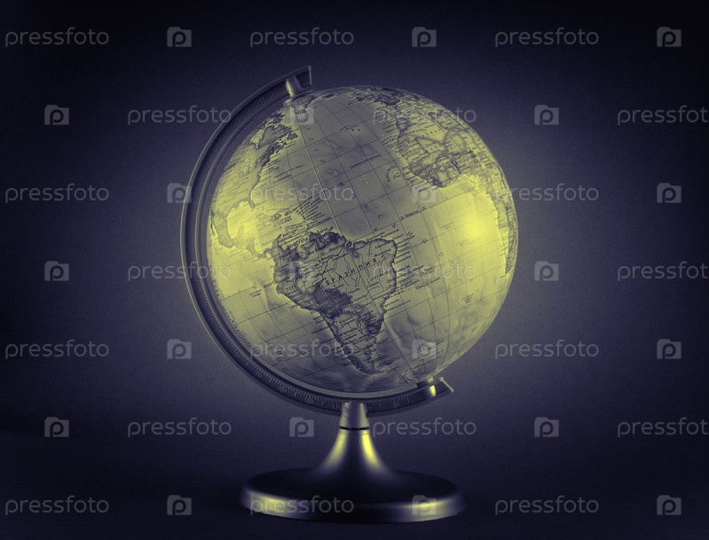 Маленький античный глобус, изолированный на темно синем фоне
