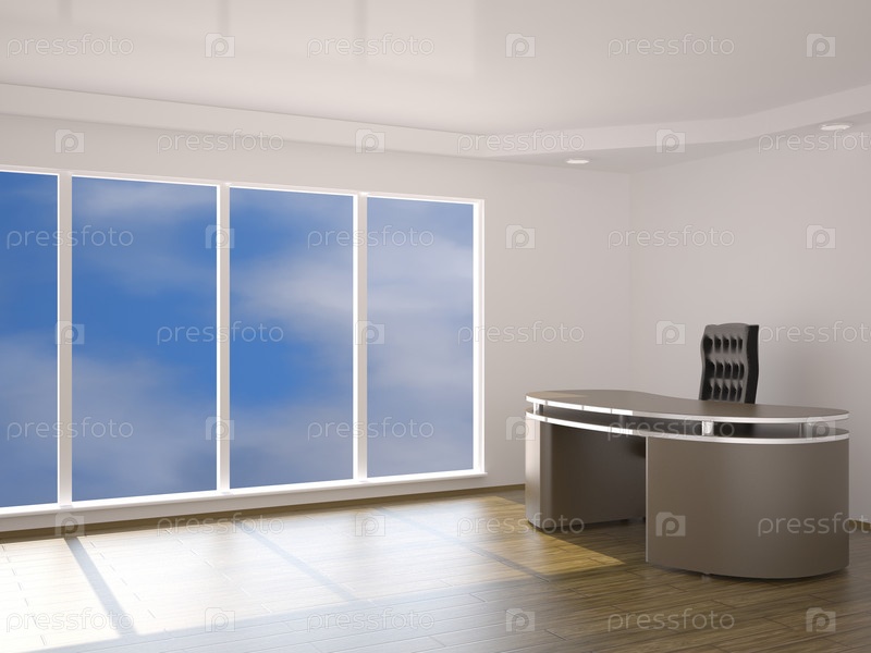 Офисное помещение со столом и кожаным креслом