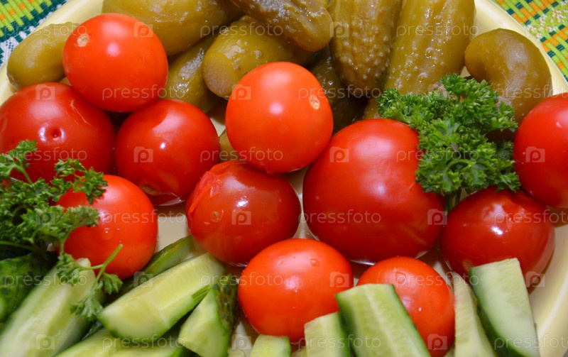 Маринованные и свежие овощи на столе