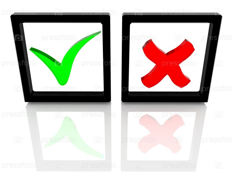Галочка и крестик из стекла в черной рамке