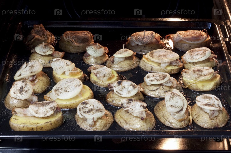 Жареный картофель с луком и беконом в духовке