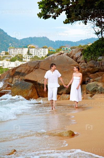 Молодая романтичная пара на пляже острова Пхукет, Таиланд