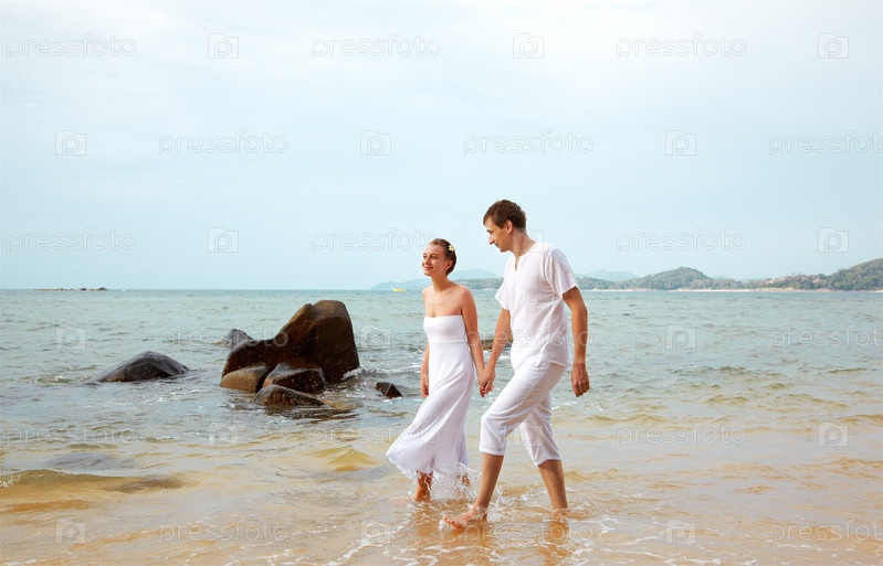 Молодая романтичная пара на пляже острова Пхукет, Таиланд