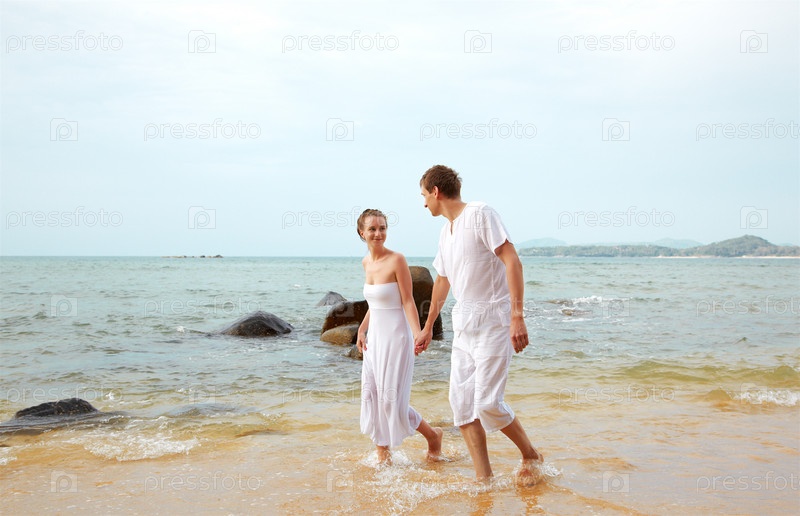 Молодая романтичная пара на пляже острова Пхукет, Таиланд
