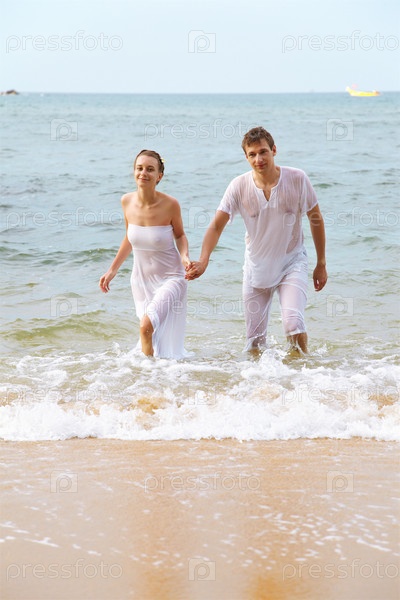 Молодая романтичная пара на пляже острова Пхукет, Таиланд