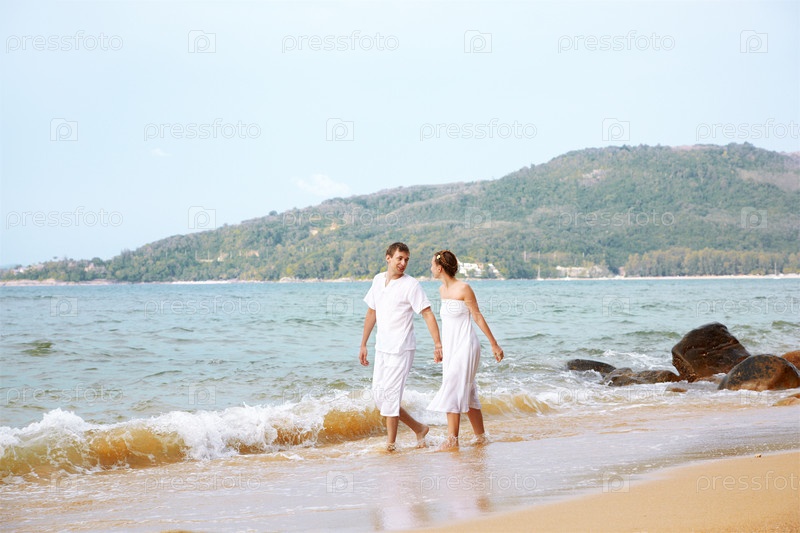 Молодая романтичная пара на пляже острова Пхукет, Таиланд