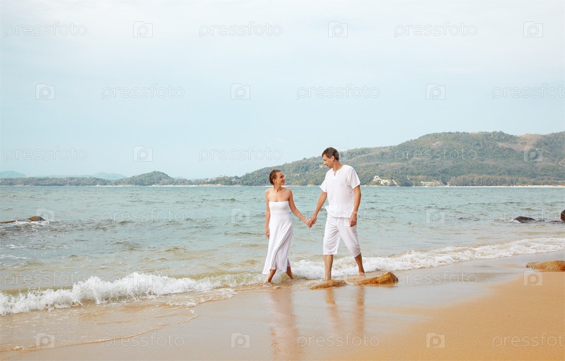 Молодая романтичная пара на пляже острова Пхукет, Таиланд