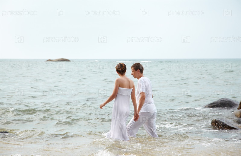 Молодая романтичная пара на пляже острова Пхукет, Таиланд