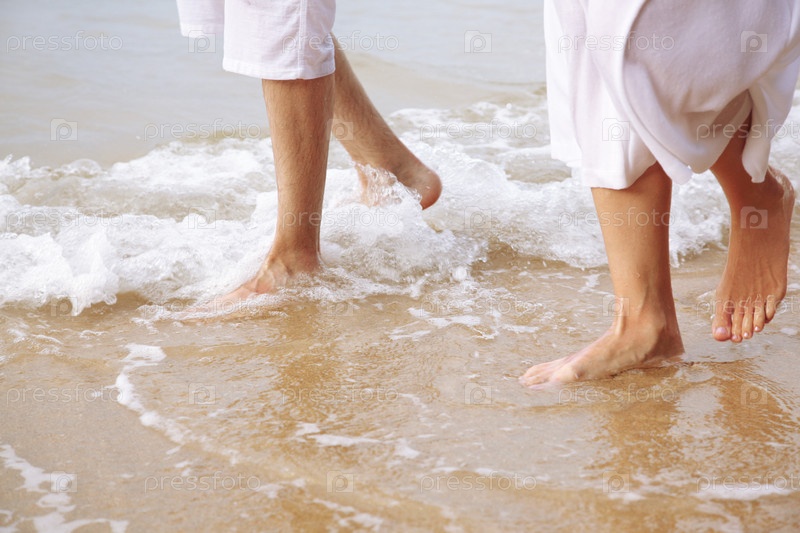 Ноги молодой пары на берегу острова Пхукет, Таиланд