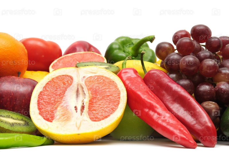 Фрукты и овощи, изолированы на белом