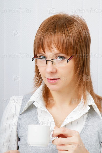 Портрет молодой красивой деловой женщины с чашкой кофе