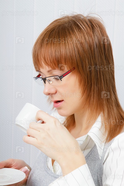 Портрет молодой красивой деловой женщины с чашкой кофе