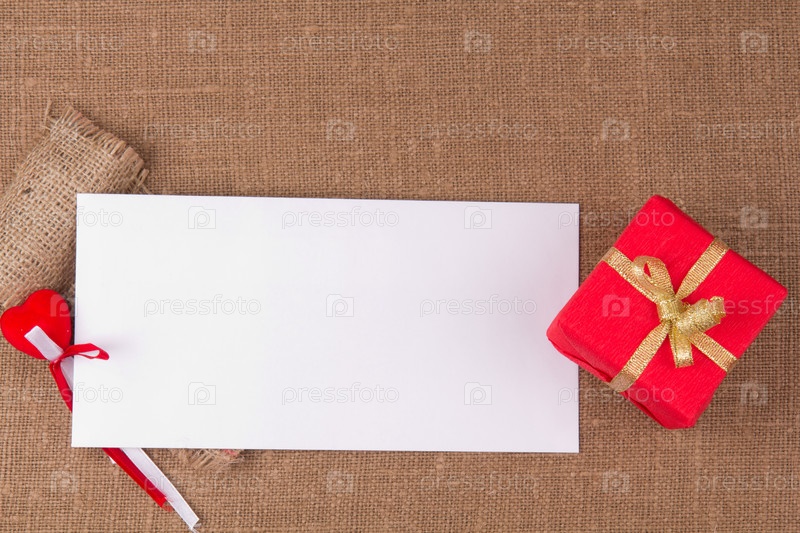 Открытка, подарок и красное сердечко к Дню Святого Валентина