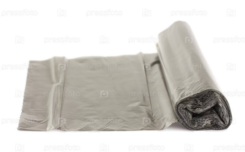 Рулон мусорных мешков на белом фоне