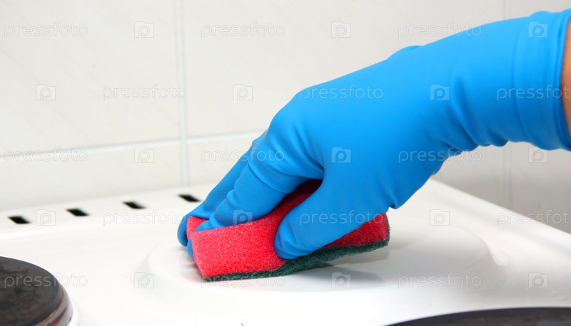 Человек чистит плиту