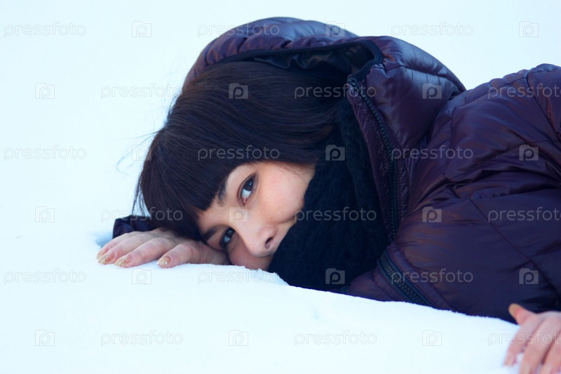 Девушка лежит в сугробе