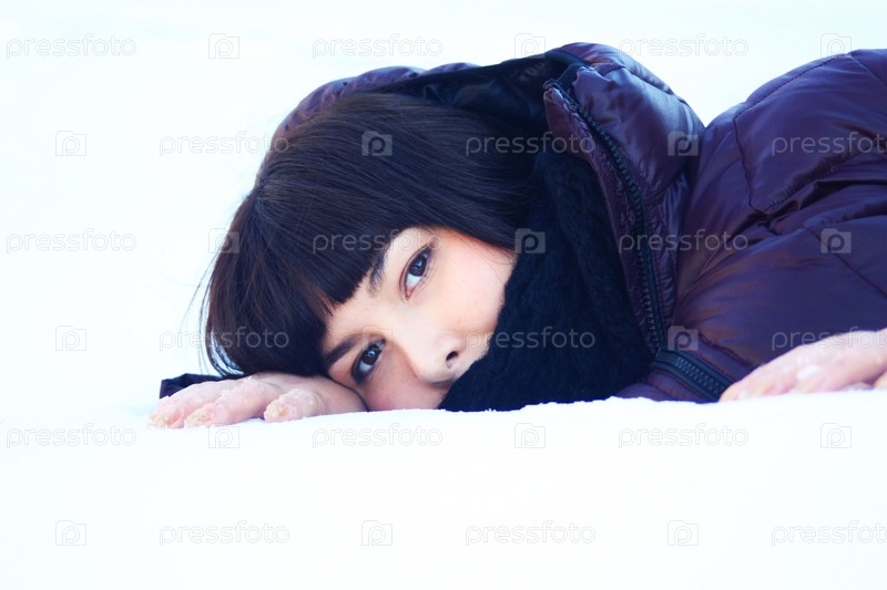 Девушка лежит в сугробе