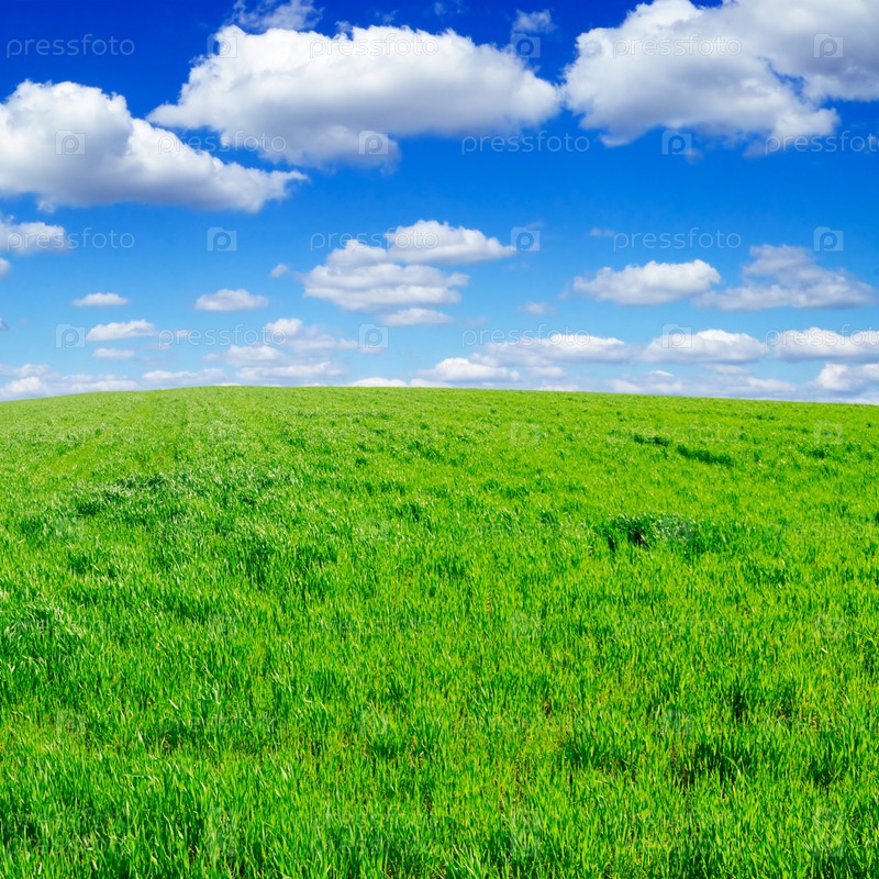 Зеленое поле под голубым небом