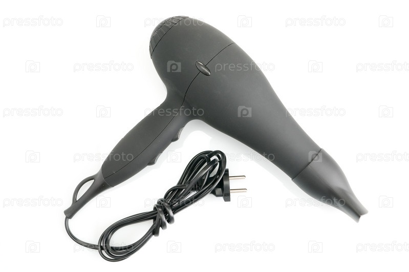 Черный фен для волос на белом фоне