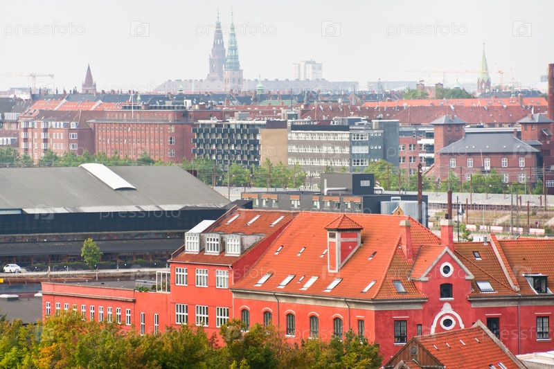 Вид на Копенгаген с морского порта, осенний день