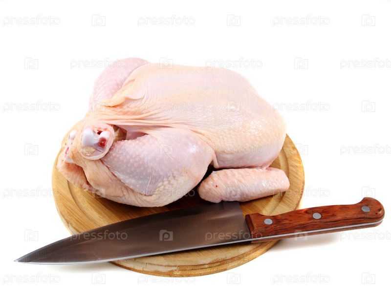 Сырая курица и нож на разделочной доске