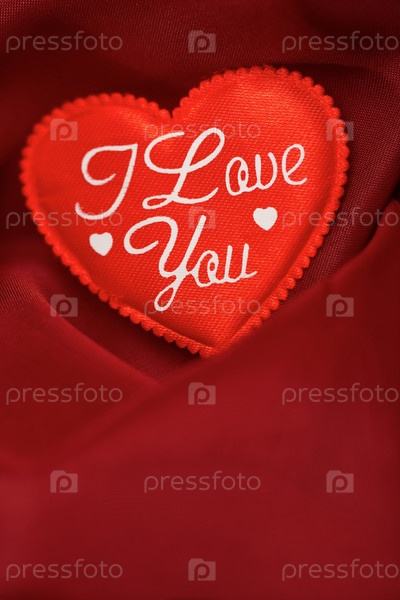 Валентинка из текстиля с надписью "Я тебя люблю!" - на абстрактном фоне