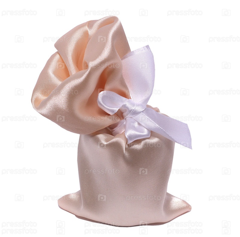 "Валентинка" из розового атласа, перевязано ленточкой- на белом фоне