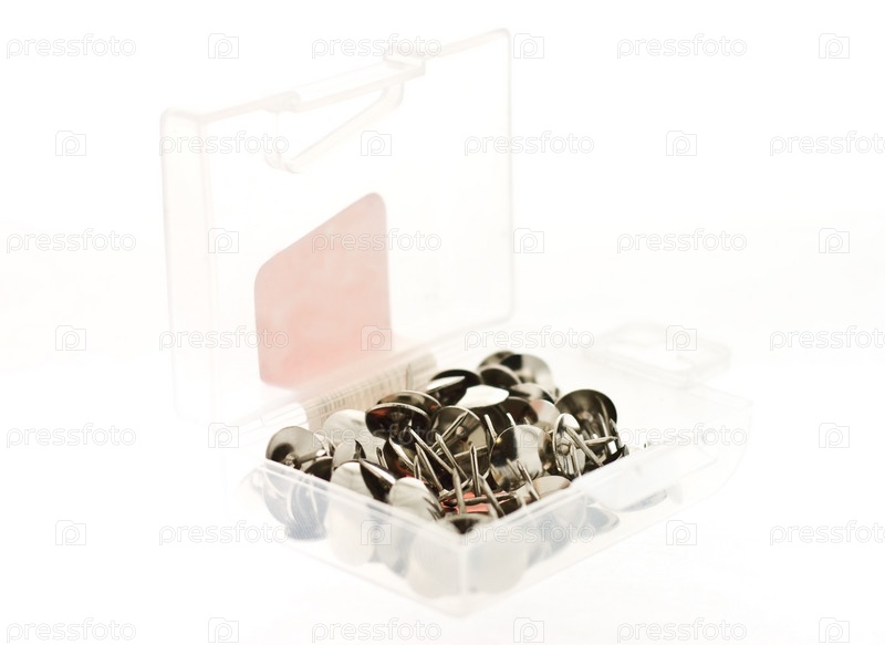 Изолированная прозрачная коробка со стальными гвоздями