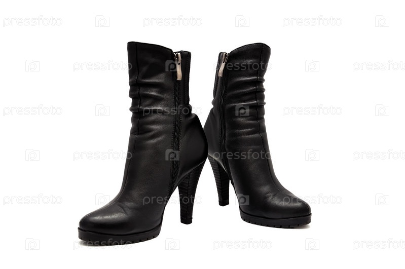 Черные женские сапоги на белом фоне