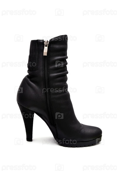 Черный женский сапог на белом фоне