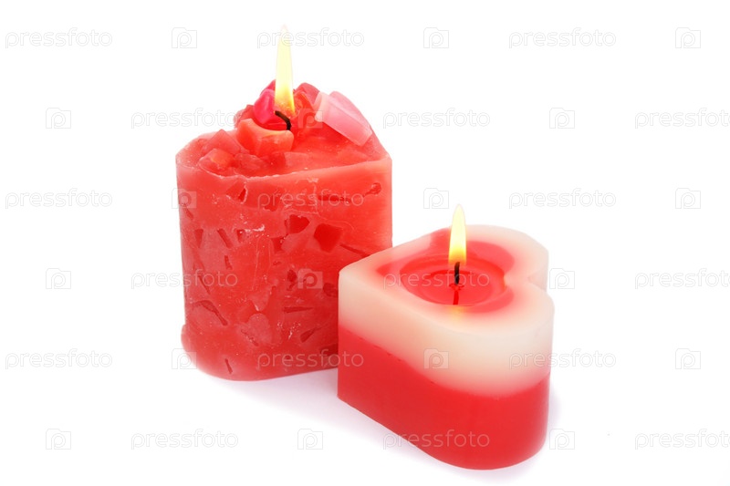 Красные свечи в виде сердец на белом фоне