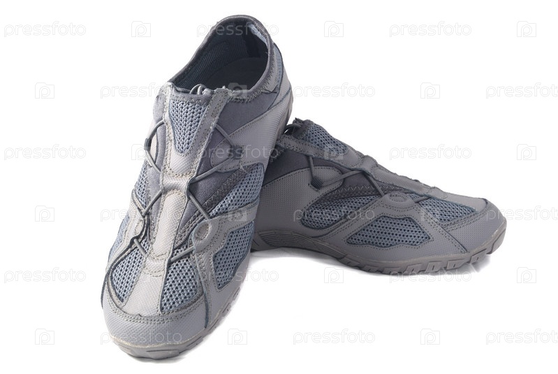 Кроссовки серого цвета на белом фоне