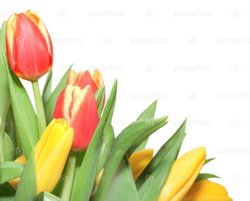 Тюльпаны на белом фоне с дорожкой обрезки