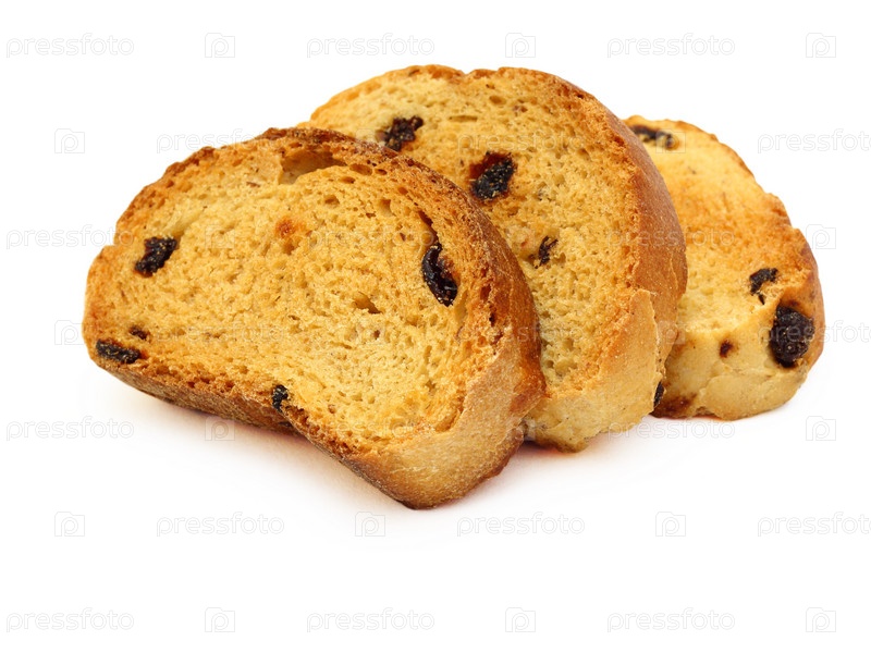 Сухарики с изюмом на белом фоне
