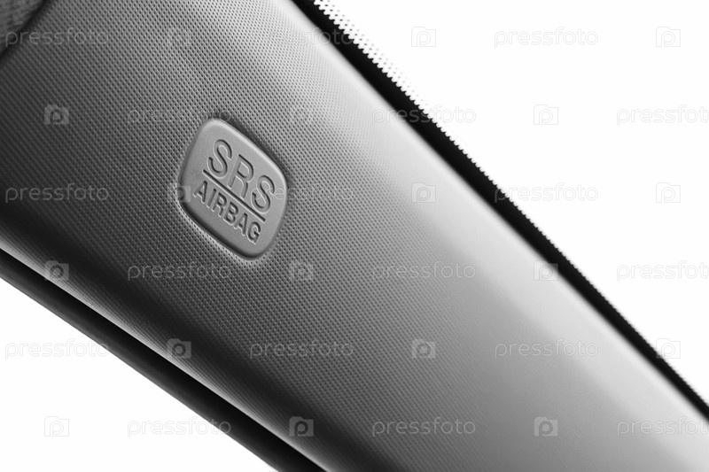 Знак SRS Aairbag, расположенный в машине ресепшн-деска, снят на близком расстоянии