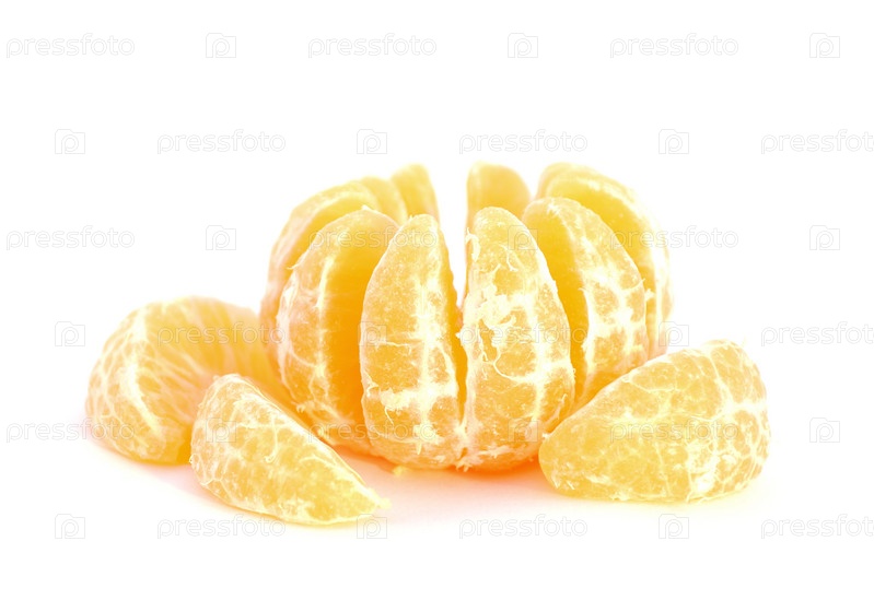 Очищенный мандарин, разделенный на дольки