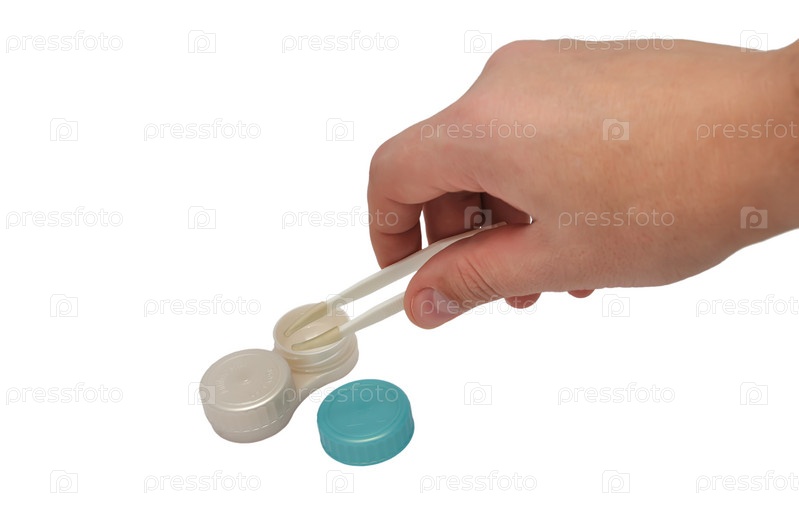 Набор для ухода за контактными линзами на белом фоне