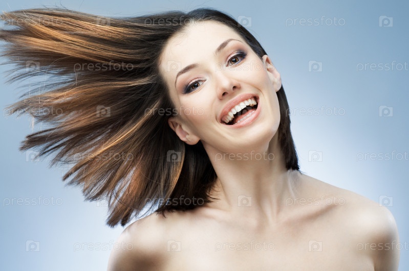 Красивая девушка на голубом фоне