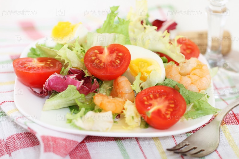 Вкусный, свежий салат с креветками и овощами