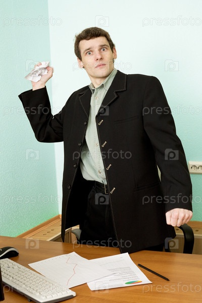 Режиссер на рабочем месте с измельченной бумагой в руке