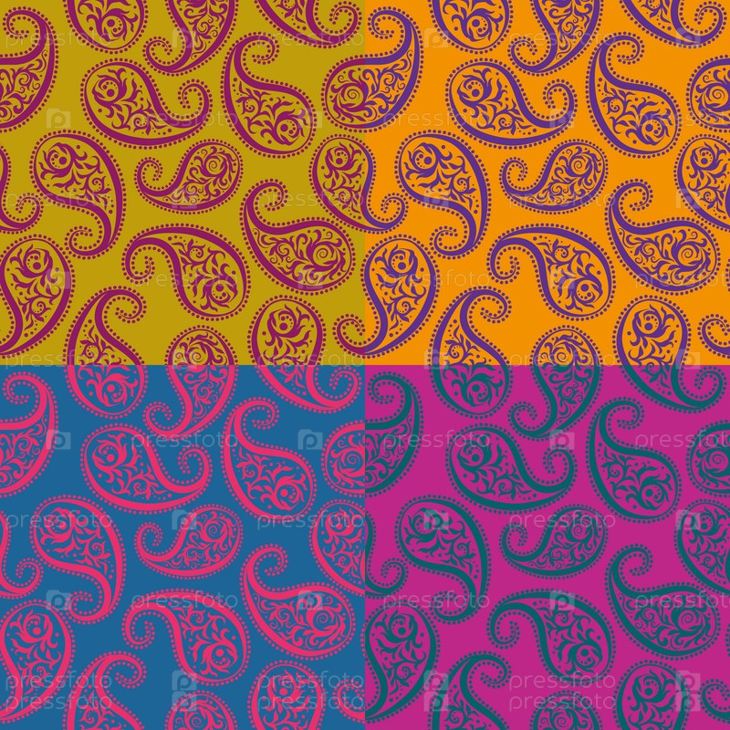 Набор 4 бесшовных шаблонов Пейсли. Каждый шаблон группируются