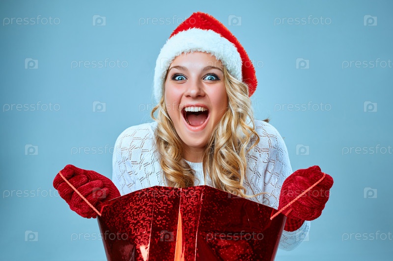 Красивая молодая женщина в одежде Санта-Клауса