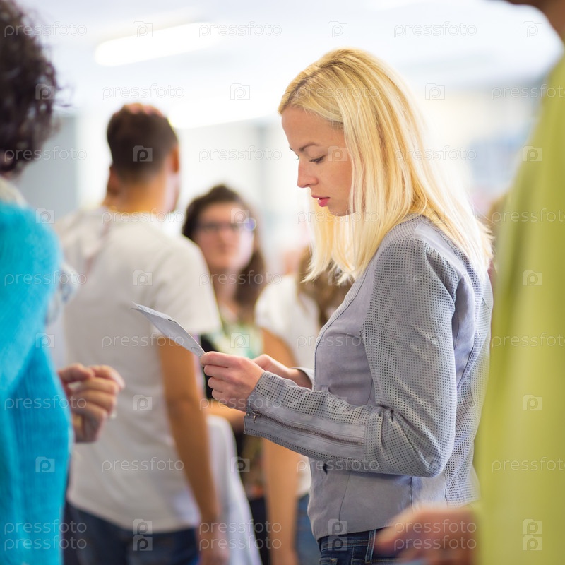 Молодая блондинка ждет своей очереди