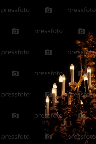 Огни винтажной люстры на черном фоне