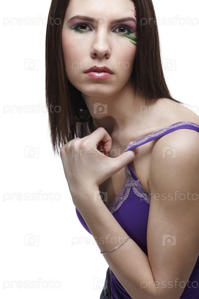 Портрет девушки с элементами боди-арта на виске, на белом фоне
