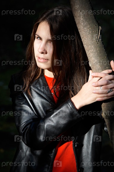 Портрет девушки-брюнетки в черном пиджаке